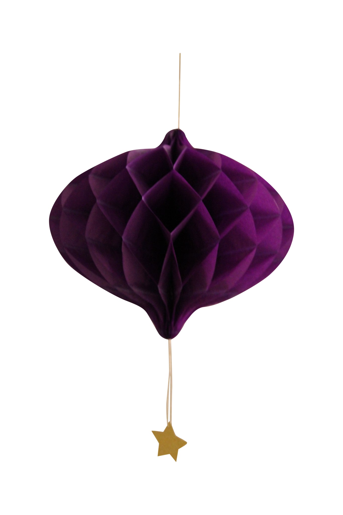 Honeycomb lantern measures 10 inches in length. Decor arrives flat and simple assembly is required.